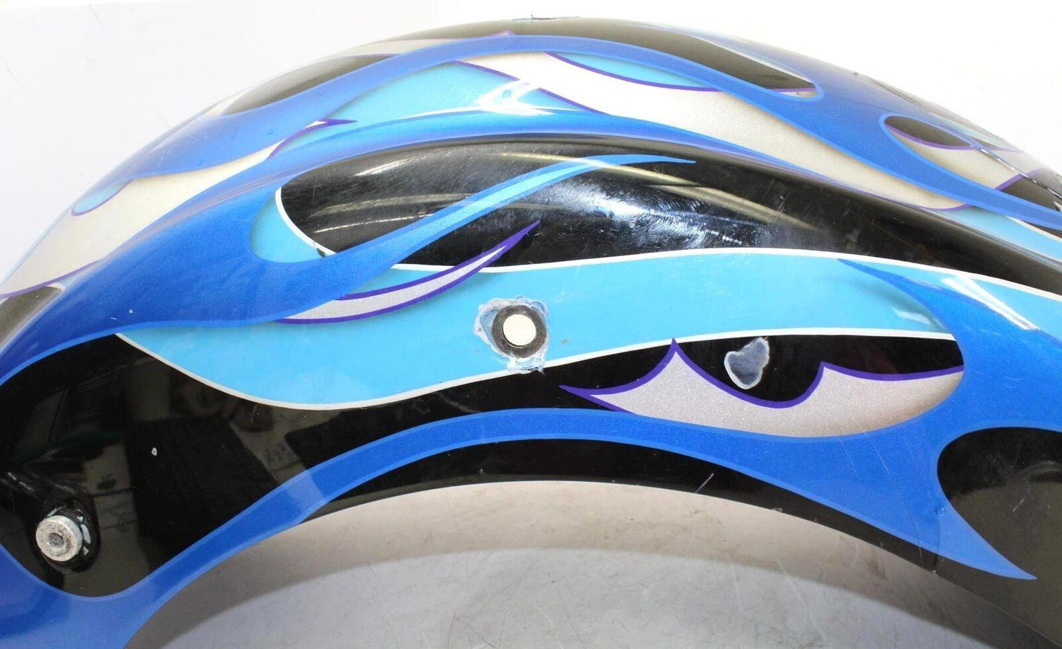 This rear fender is in used condition : with dents and chipped paint. This comes as shown in the photos. please view all photos closely for details. Thank you!