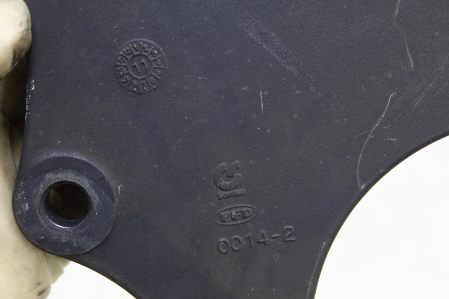 This rear brake caliper hanger mount has cosmetic scratches and shows normal signs of wear. Please view all photos closely for details. Thank you!Fast Shipping