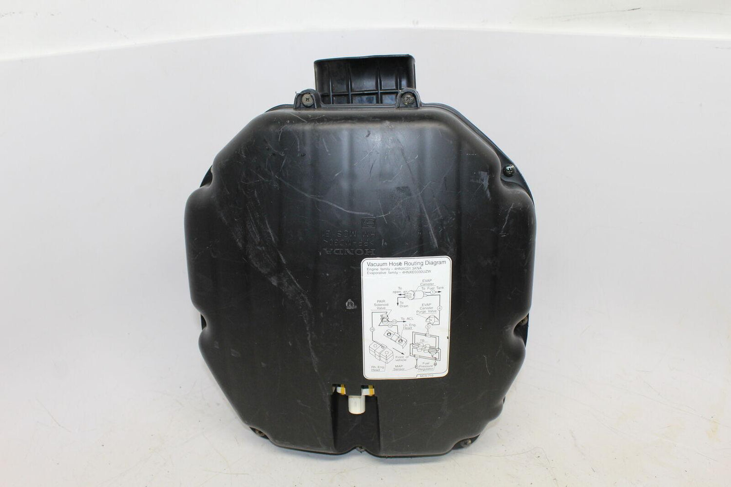 This airbox is in used condition and shows normal signs of wear. This airbox has some light scratches. Please see the picture with the pointer that shows the scratches up close