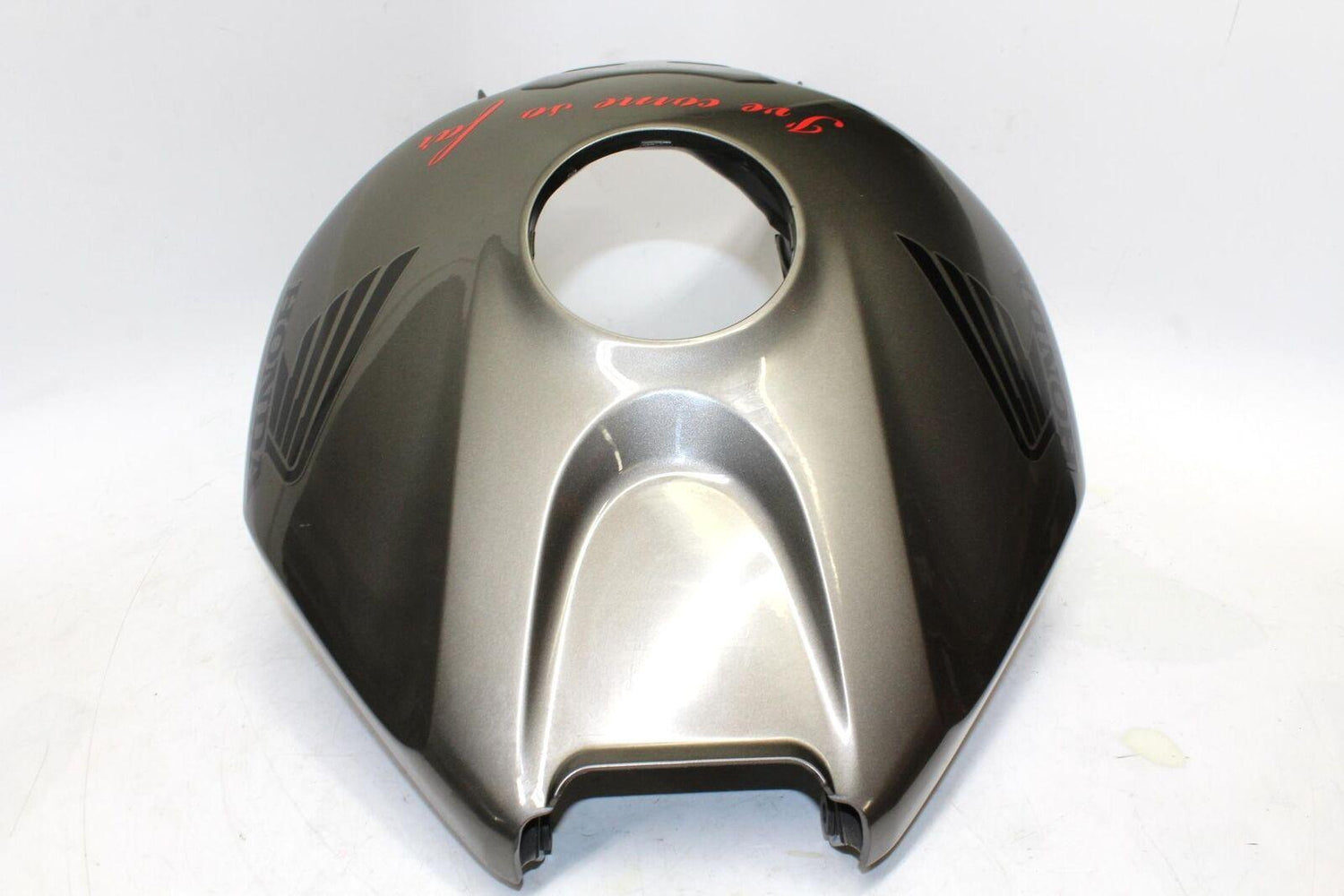 This gas tank fairing is in great condition with normal wear. The tabs are in tact so it will mount like it should. It has small scratches you can see in pictures.