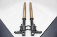 This front fork set is in good/straight condition and shows normal signs of wear. This set has some scratches and chips. Also, the mount is slightly bent. The seals may leak; the front forks havenât been serviced! Please view all photos closely for details. Thank you!Fast Shipping