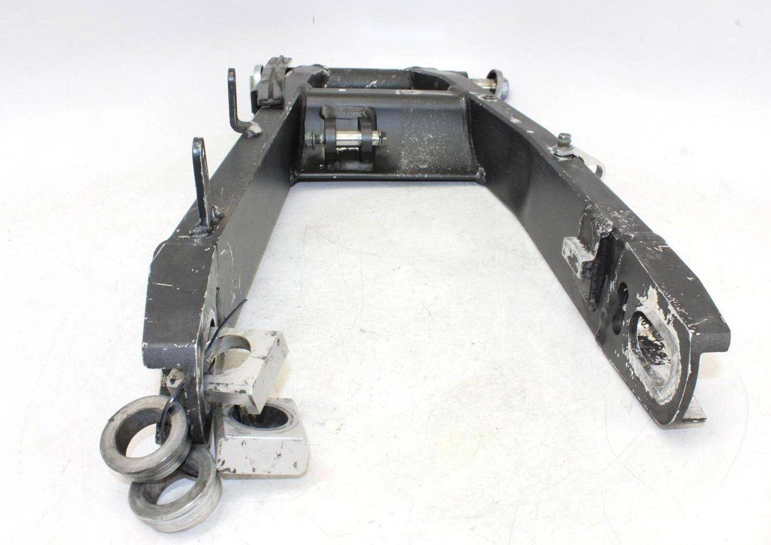 This swingarm is with scratches and rash. This comes as shown in the photos. please view all photos closely for details. Thank you!