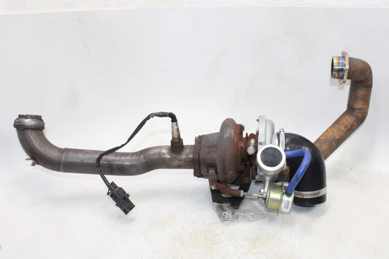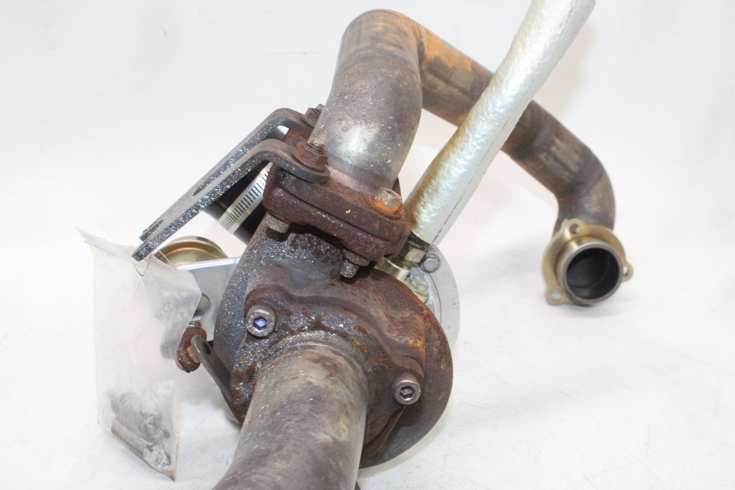 This exhaust mid pipes w turbocharger (AFTERMARKET, Garrett) has rust and shows normal signs of wear. Please view all photos closely for details. Thank you!Fast Shipping