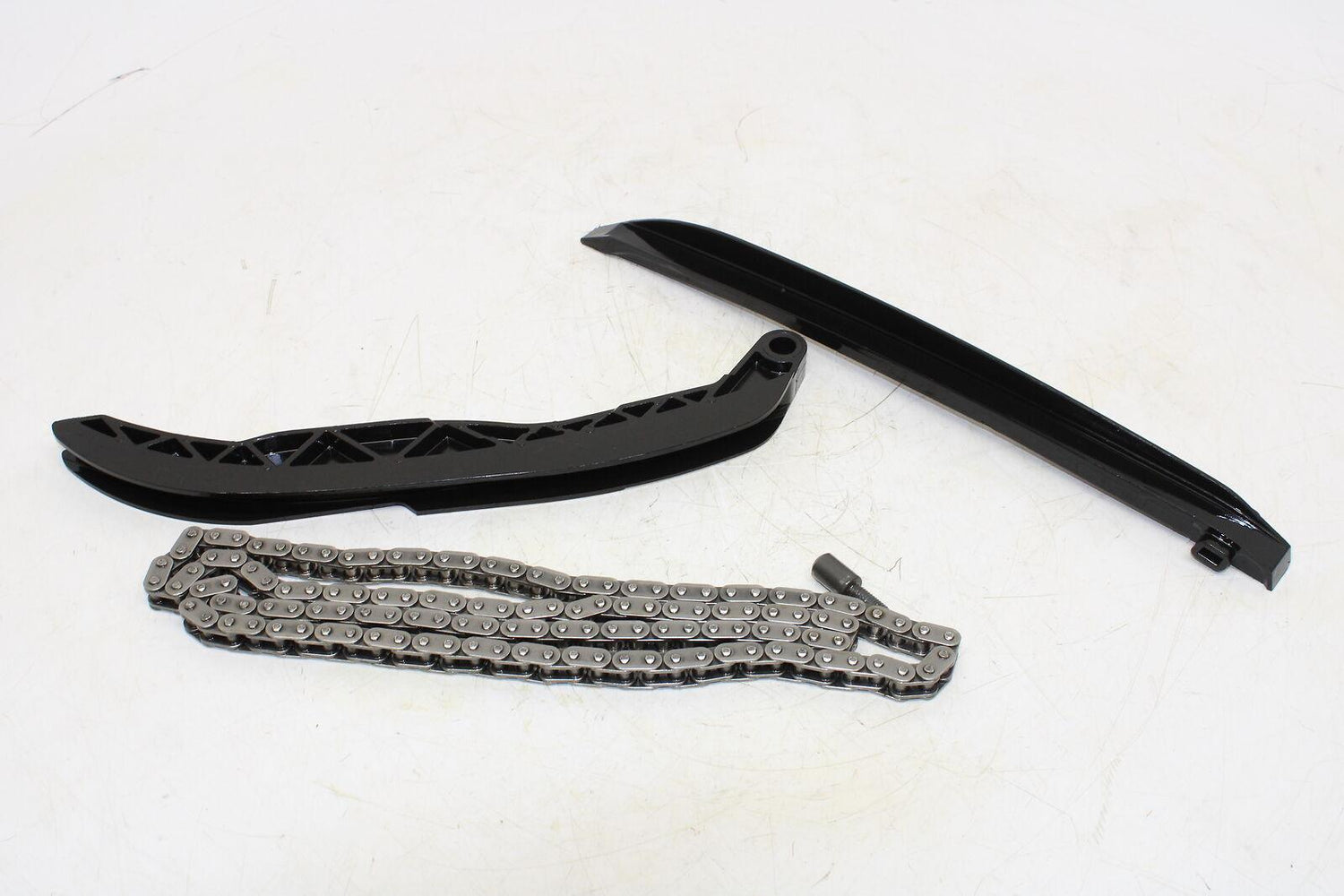 This cam chain with guides is in good condition and shows normal signs of wear.